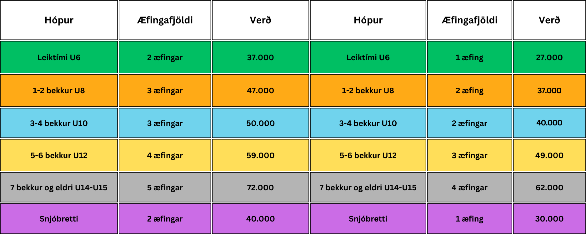 Æfingagjöld veturinn 2025-2026 Vetrarkort er innifalið í æfingaverði