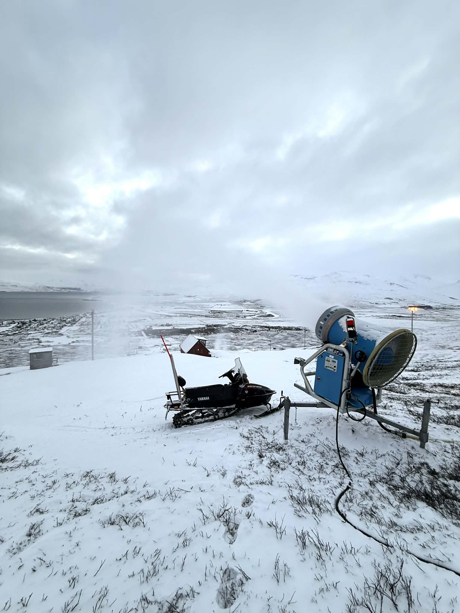 Ein breyting varð á snjóframleiðslukerfinu á árinu sem var að líða, samhliða því að leggja nýtt rafmagn til að anna nýja aðstöðu húsinu var tækifærið nýtt og lagður afkastamikill strengur í jörð sem gerir okkur kleift að keyra allar sex snjóbyssurnar á sama tíma, áður höfðum við aðeins rafmagn fyrir fimm og finnum við strax munin á því hversu auðveldara er að koma svæðinu inn. Vonandi í næstu framtíð finnst peningur til að efla dælukerfið og auka afköstin enn frekar.