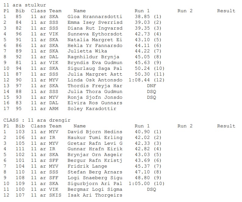 - Svig 11 ára drengir
