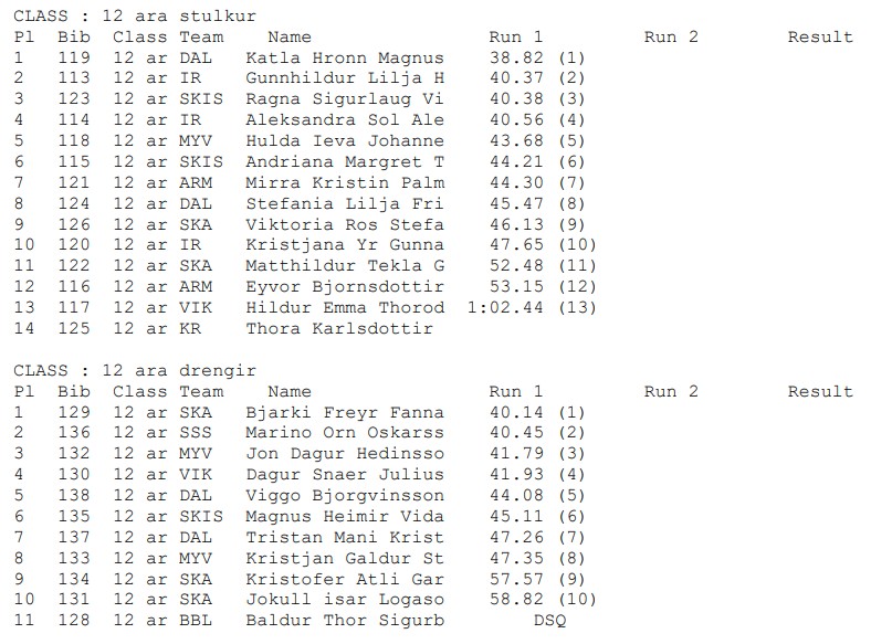 - Svig 12 ára drengir