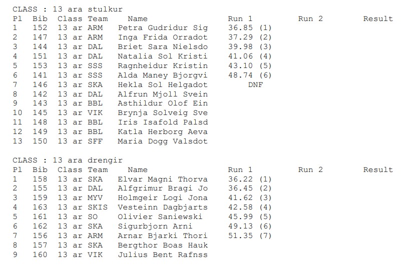 - Svig 13 ára drengir